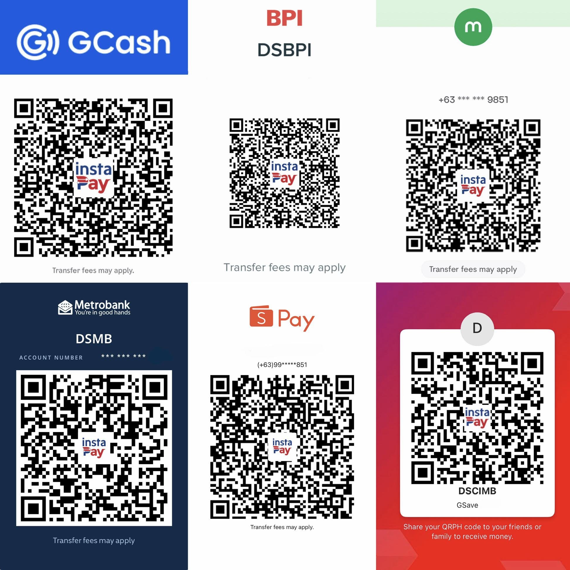 Use any of our Payment QR codes found below to pay.